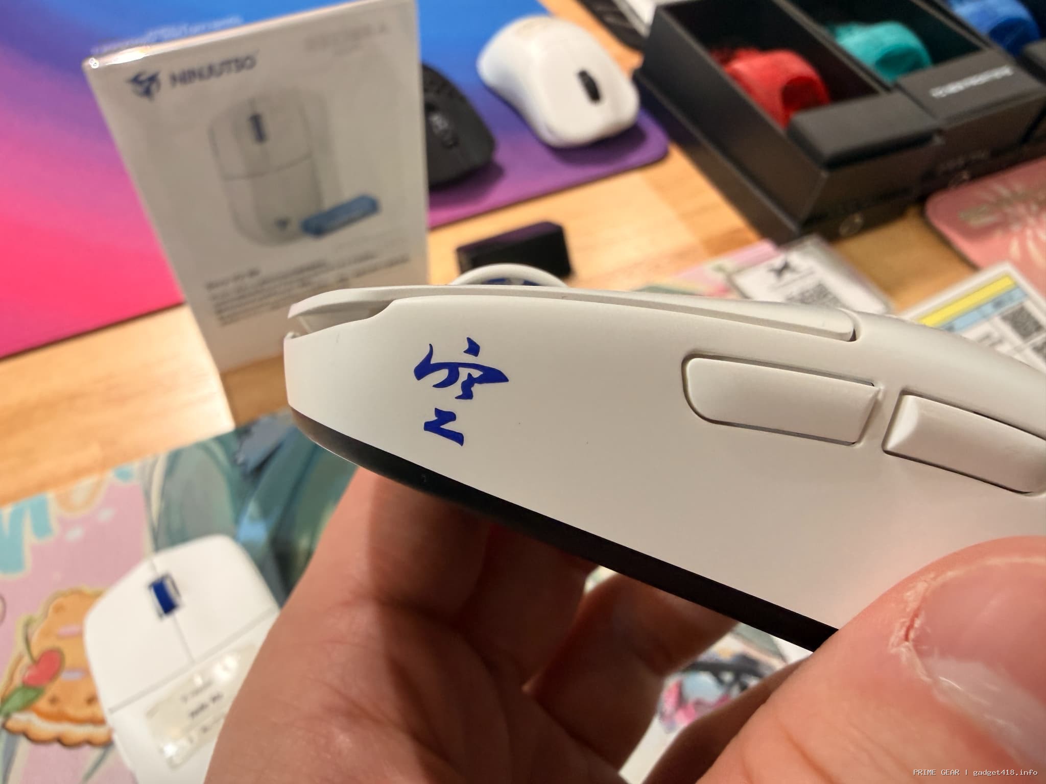 個人的には背の低い「Ninjutso Sora V2」の方が好印象だったのを覚えていますが、これ以外のマウスについてもめちゃくちゃ喋ってくれて、好きなポイントを教えてくれたので分かりやすかったです。